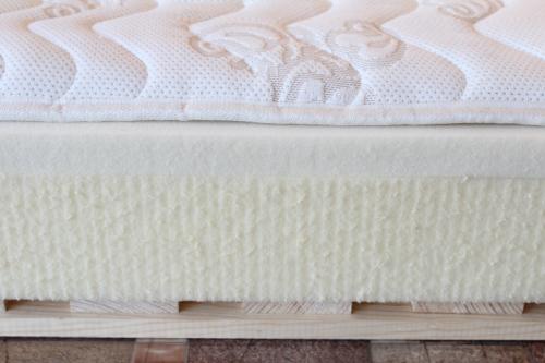 Съдържа ядро от високоеластична пяна, което служи за опора и стабилност, и горен омекотяващ повърхностен слой от Мемори пяна.